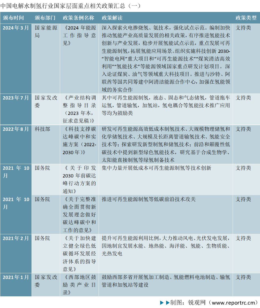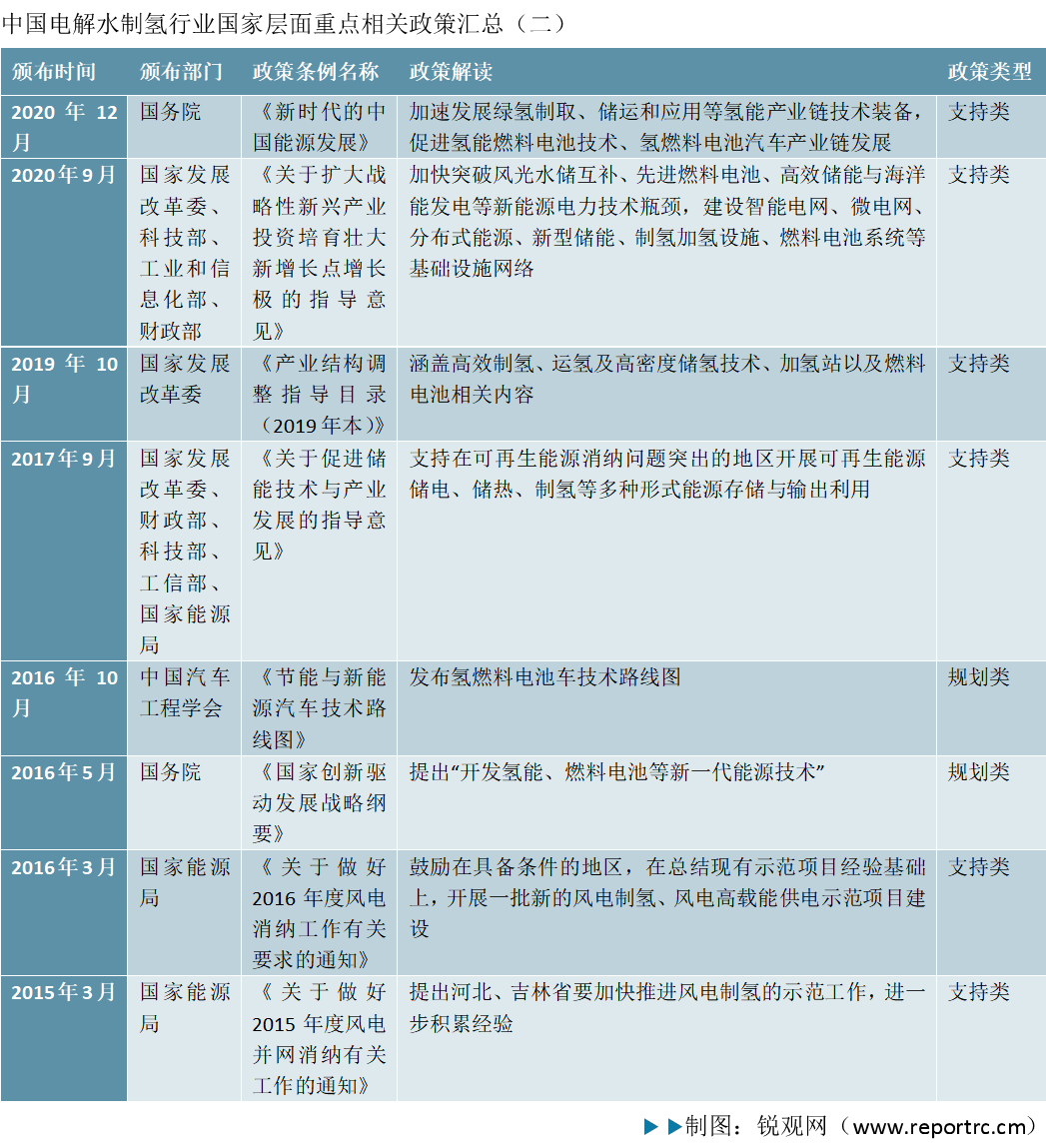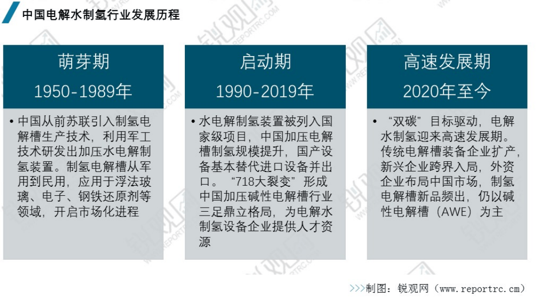 中国电解水制氢财产始于20世纪50年代畴前苏联援帮项目标手艺引入,其成长过程可分为三个阶段:萌芽期(1950-1989年),依托军工手艺,我国研发出加压水电解制氢安拆。跟着市场经济兴起,电解槽从军事用处拓展至平易近用范畴,使用于浮法玻璃、电子、钢铁还原剂等行业。启动期(1990-2019年),国内加压电解槽制氢规模显著提拔,国产设备根基实现对进口设备的替代,还成功打入国际市场。“718大裂变”鞭策电解水制氢设备企业加速市场化程序。高速成长期(2020年至今),“双碳”方针驱动下,绿色低碳手艺成为行业核心,电解水制氢手艺备受青睐。保守企业扩大产能,新兴企业纷纷入局,外资企业加快正在中国市场结构,电解槽新产物不竭出现,且仍以碱性电解槽(AWE)为从。跟着全球天气变暖不竭加快,成长低碳能源已成为时代付与的主要。中国正在摸索和使用低碳能源范畴处于全球领先地位。氢能源做为一种洁净低碳能源,备受国度关心取支撑。近年来,国度接踵出台一系列电解水制氢相关政策,旨正在鞭策高效操纵廉价且丰硕的电解水资本制氢,指导电解水制氢行业财产链上中下逛协同成长,为该行业营制了优良的成长。2006年:国务院发布《国度中持久科学和手艺成长规划纲要(2006-2020年)》,提出沉点研究可再生能源制氢手艺,标记着我国可再生能源制氢行业的政策初步。