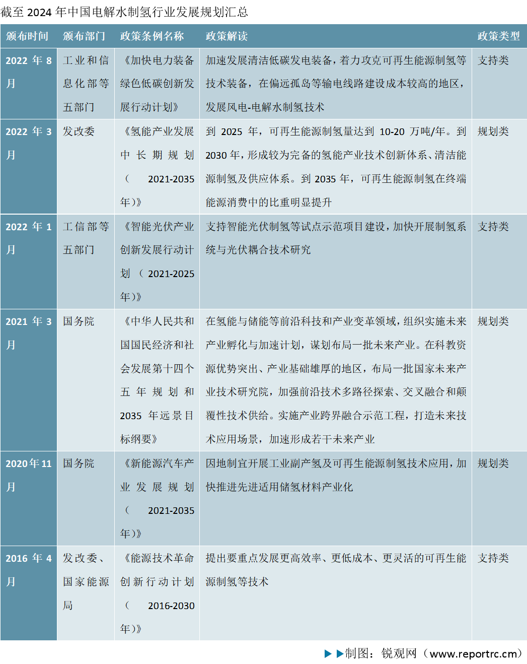 近年来,以及我国“双碳”方针的推进,电解水制氢做为获取绿色氢能的主要体例,遭到了普遍关心。我国接踵出台了一系列主要政策规划,如《能源手艺立异步履打算(2016-2030年)》《氢能财产成长中持久规划(2021-2035年)》等,涵盖试点示范项目扶植、手艺程度提拔、制氢规模拓展等环节方面,为行业的有序、快速成长指了然标的目的。以下是截至2024年中国电解水制氢行业成长规划的细致汇总: